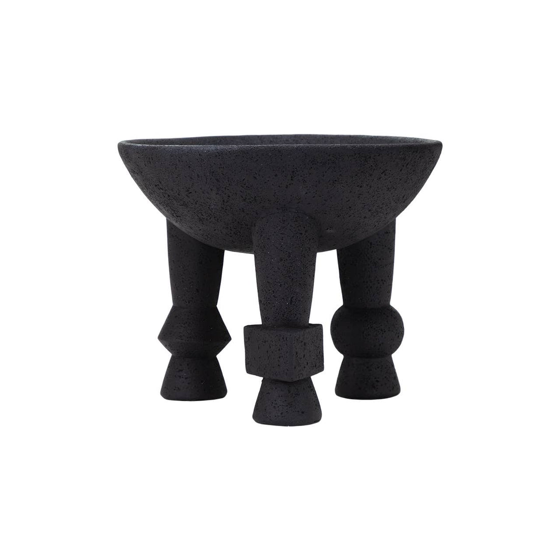 Tamir Small Decorative Pedestal Bowl | Sculptural Matte Black Accent