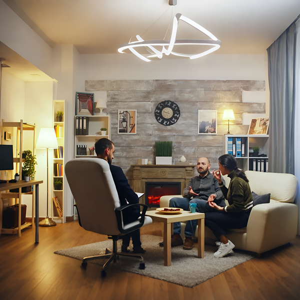 Ambient/task/accent plans, statement fixtures, lamp/sconce selection and placement.