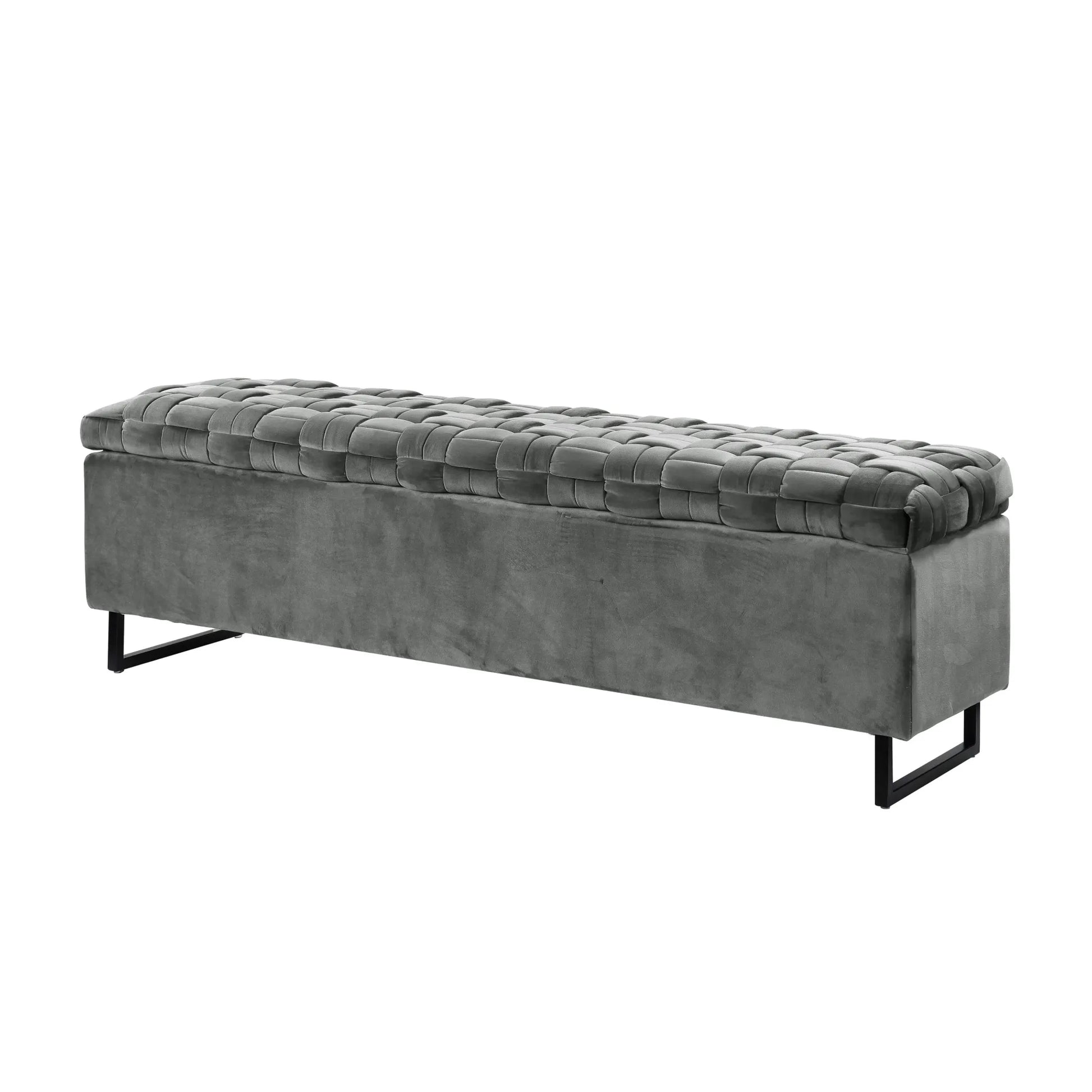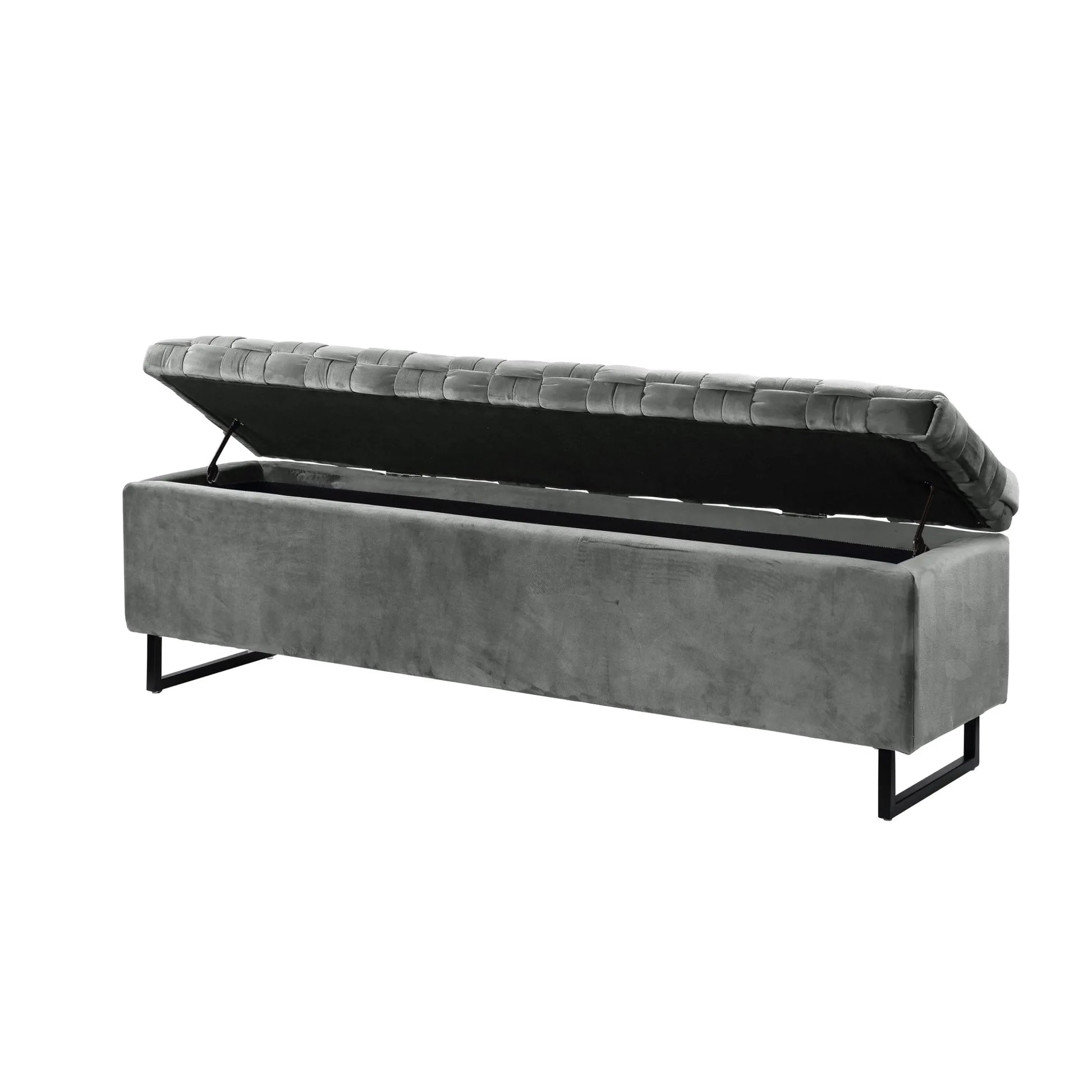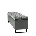 16" Gray Upholstered Velvet Bench with Flip top