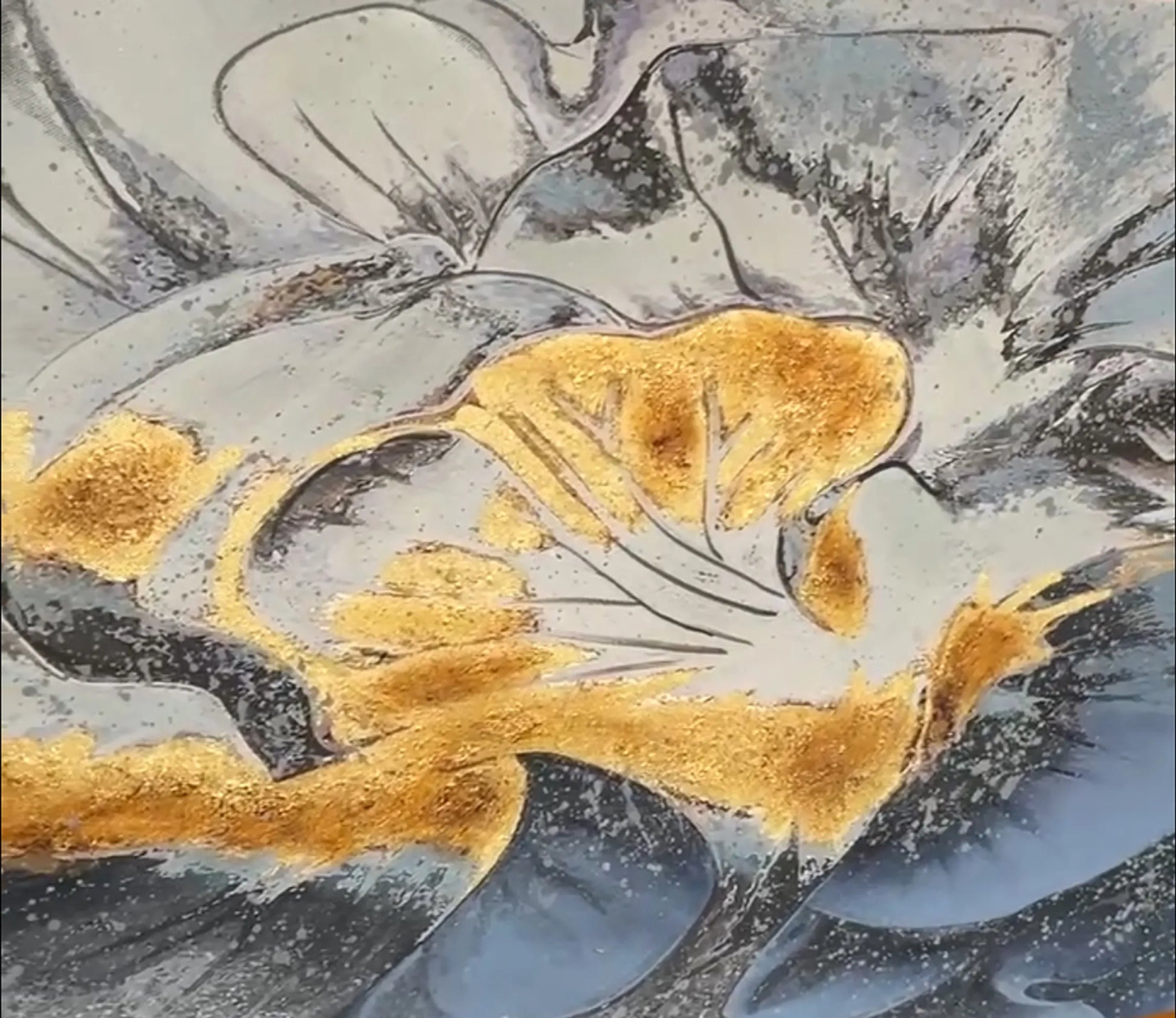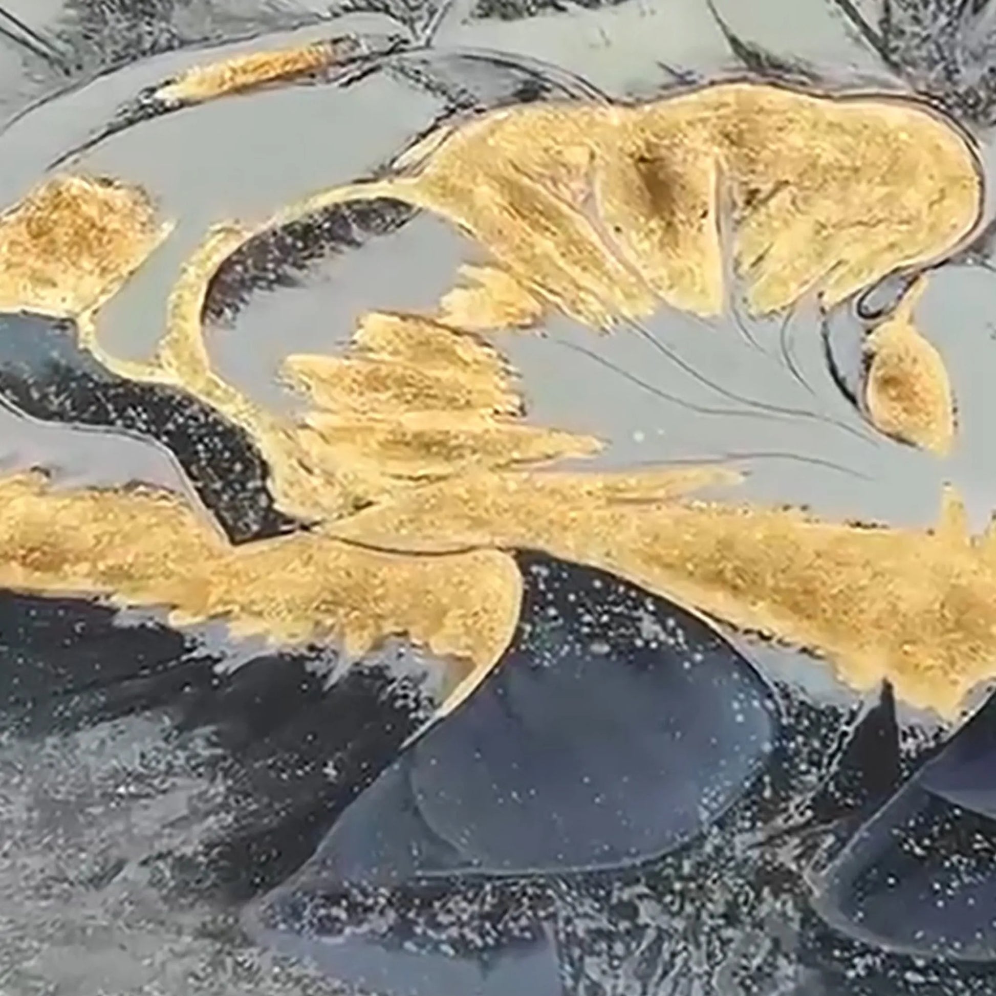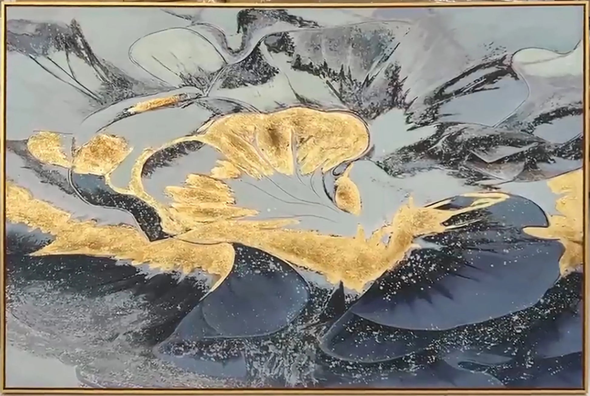 Blue and Gold Modern Abstract Gold Framed Oil Painting Wall Art