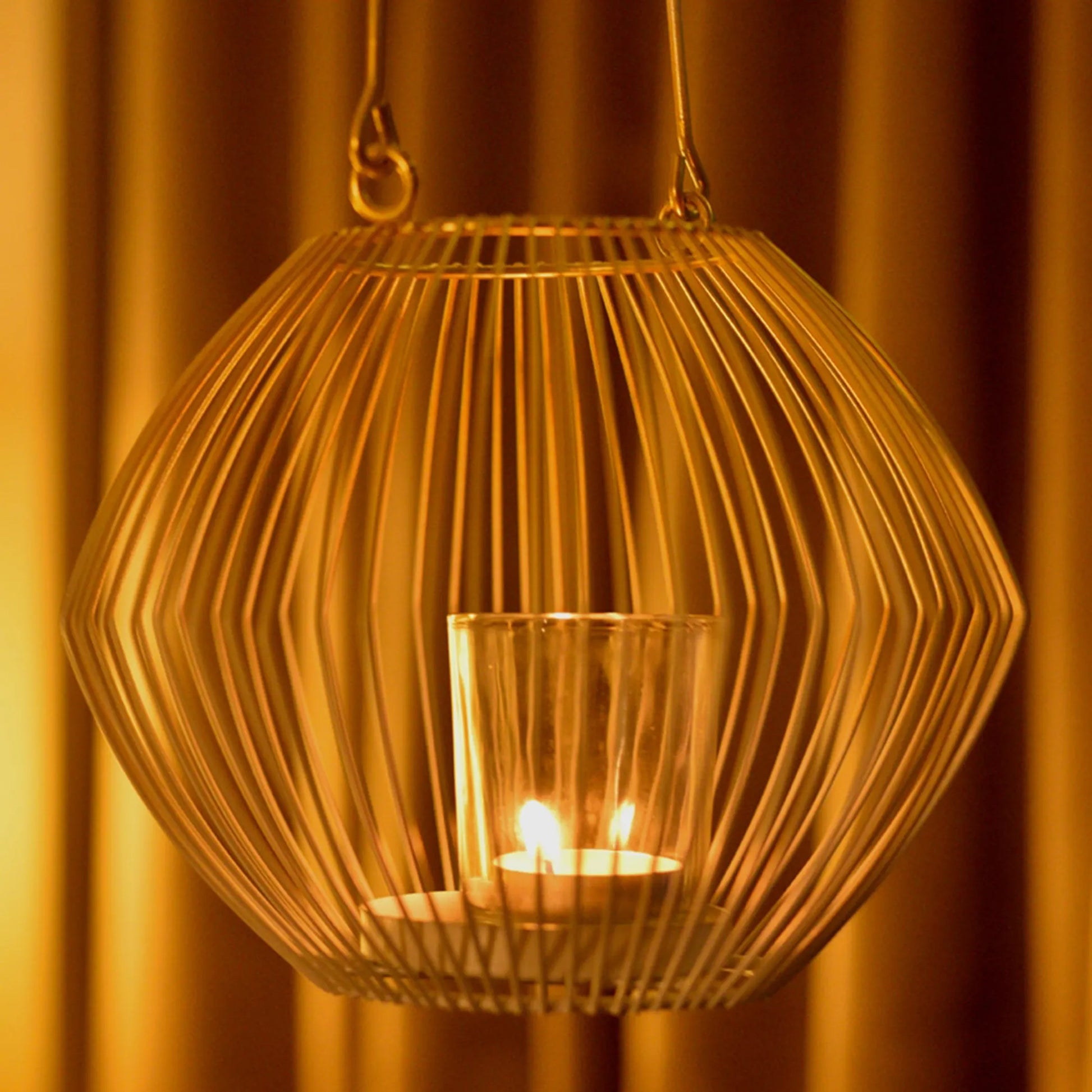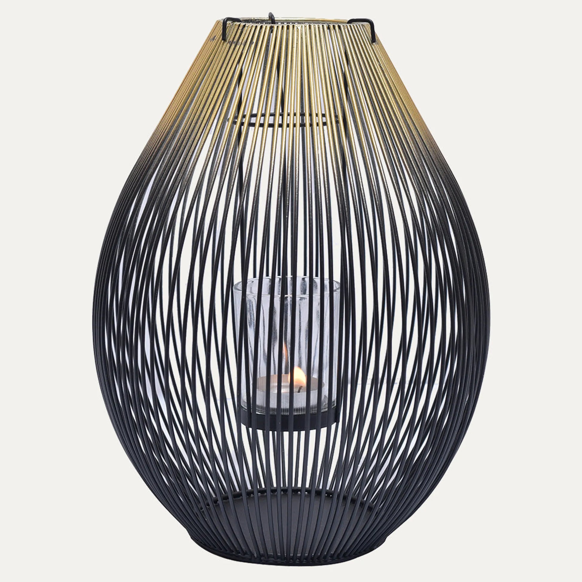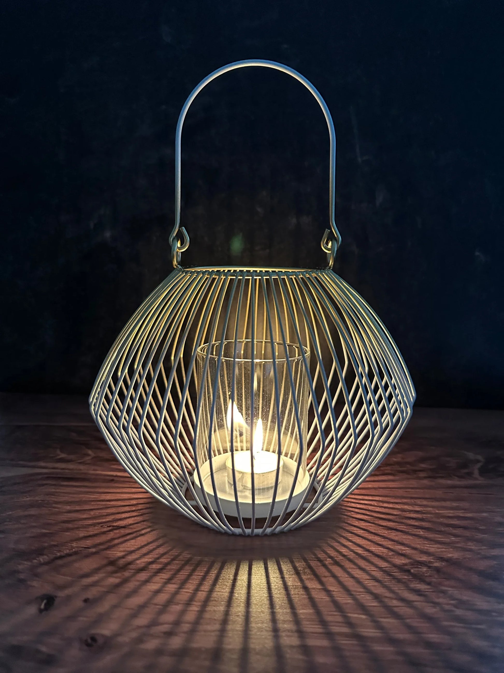 Add glam to your interior with this modern Glass Candle Holder. This decorative lantern is made entirely of Metal sticks which are bent together.