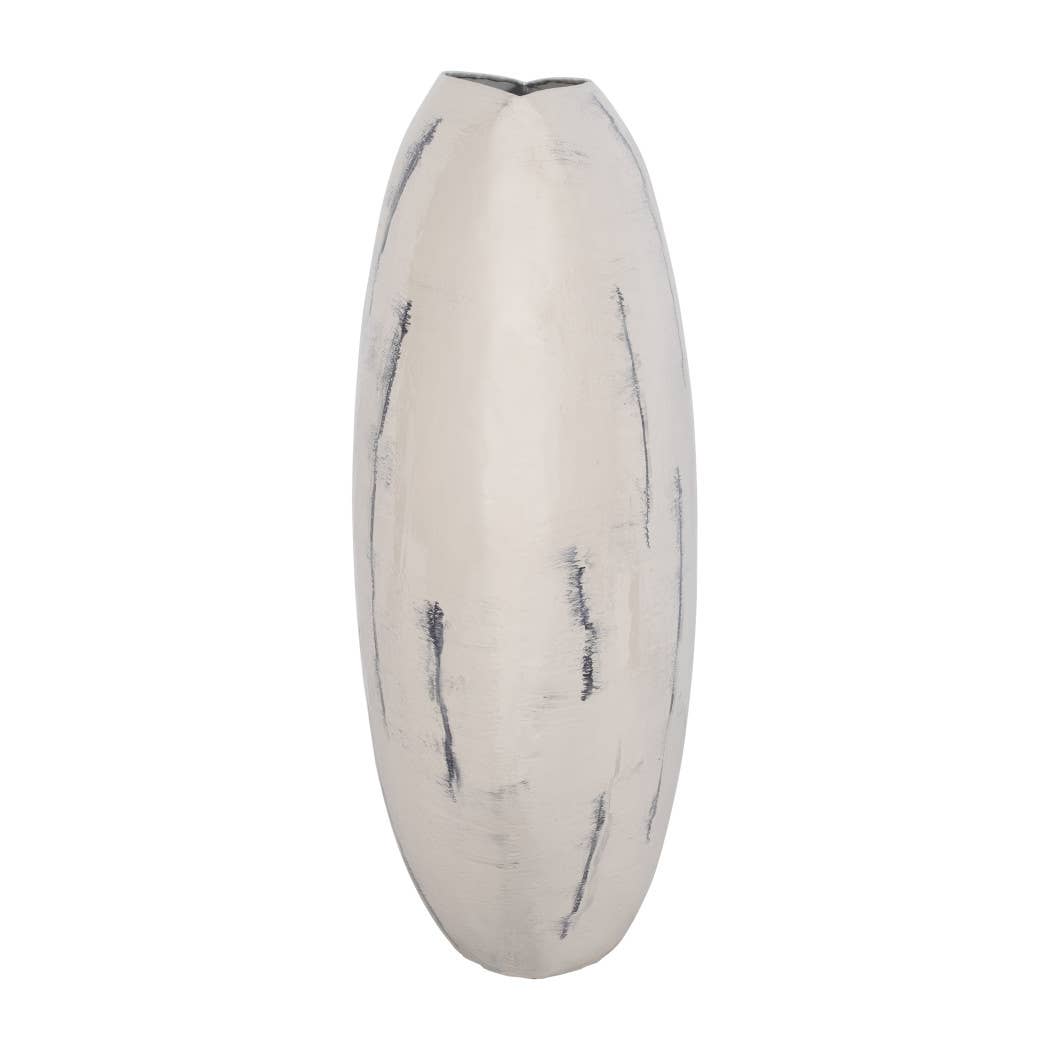 Distressed White Metal Round Vase (33”) – Timeless Decorative Accent