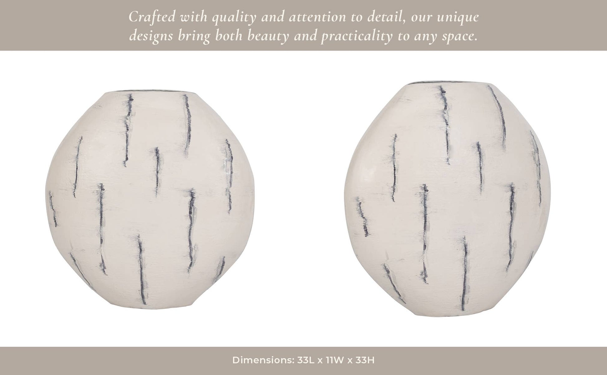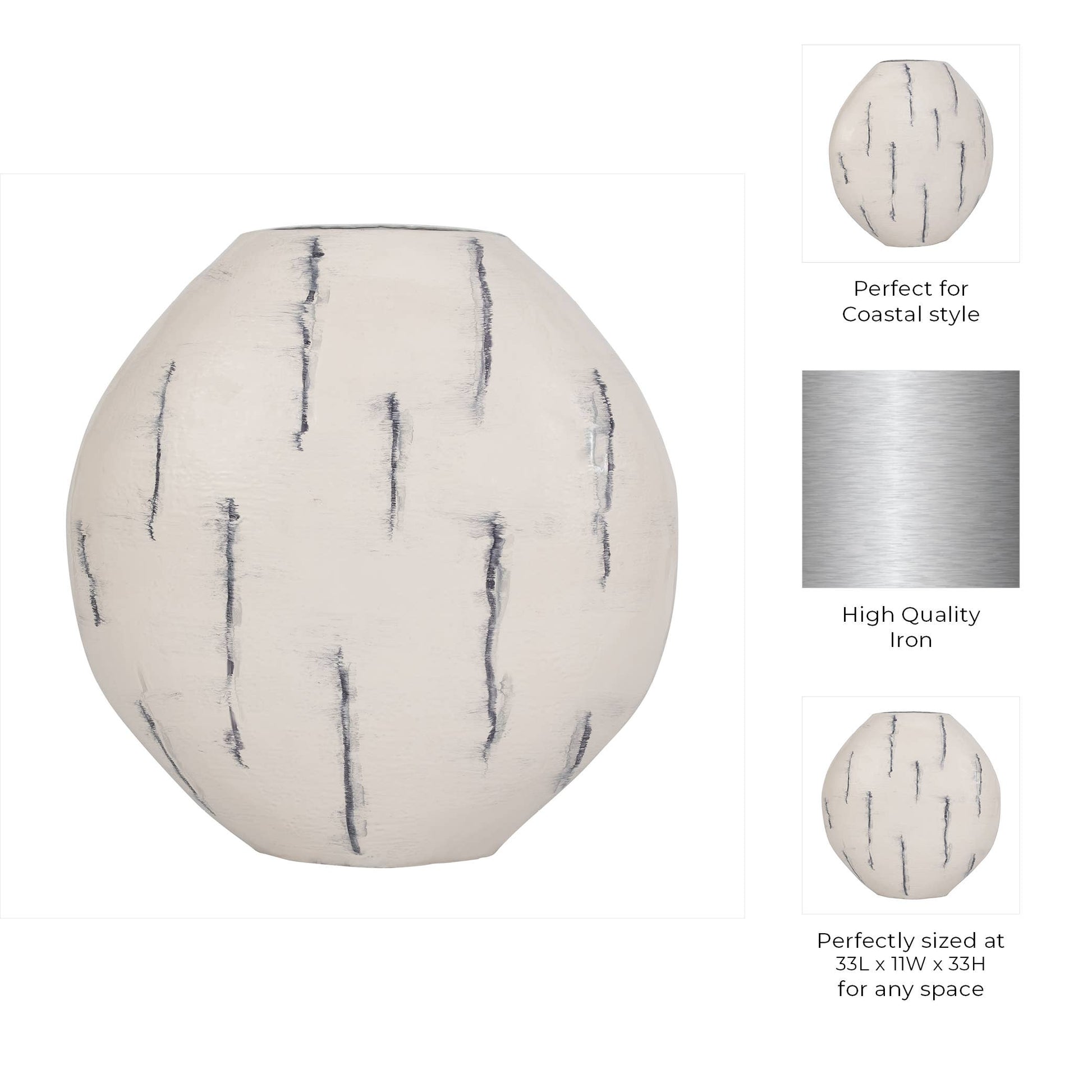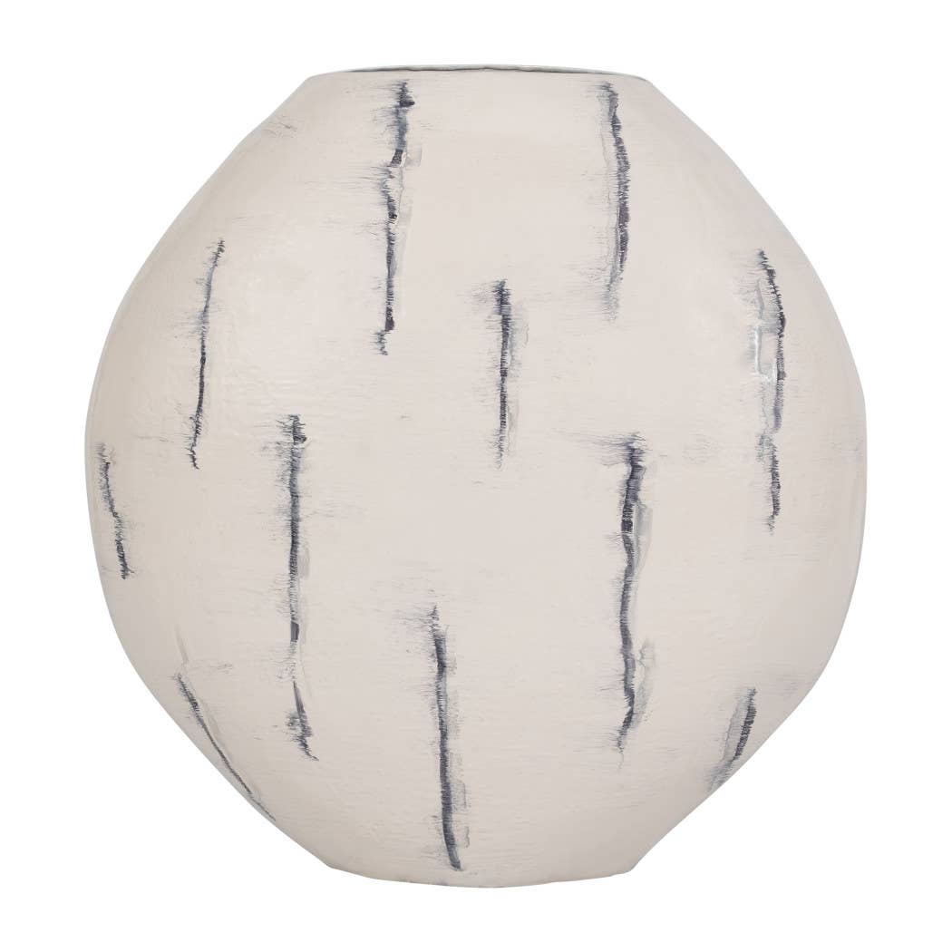 Elevate your space with this 33-inch distressed white metal round vase, a timeless decorative accent designed to complement a wide range of interiors. Featuring an enameled finish and softly weathered texture, this vase brings understated character and depth to both modern and classic spaces.