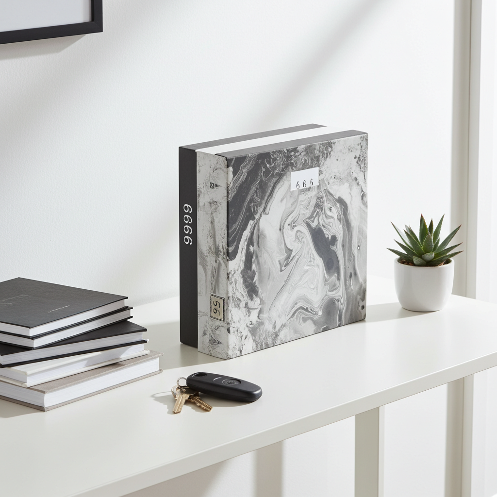 Add refined character and concealed storage to your space with this Hand Painted Gray Marble Book Box – Medium (12”). Designed to resemble a classic decorative book, this distressed wooden box features a hand-painted gray marble finish, offering layered texture and timeless appeal.