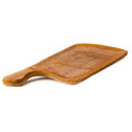 The Ono Cheese Board Serving Platter with Handle is hand-carved from solid Javanese teak wood by artisans in Indonesia. Designed for serving and presentation, this rectangular platter features a built-in handle and a smooth, food-safe natural finish.