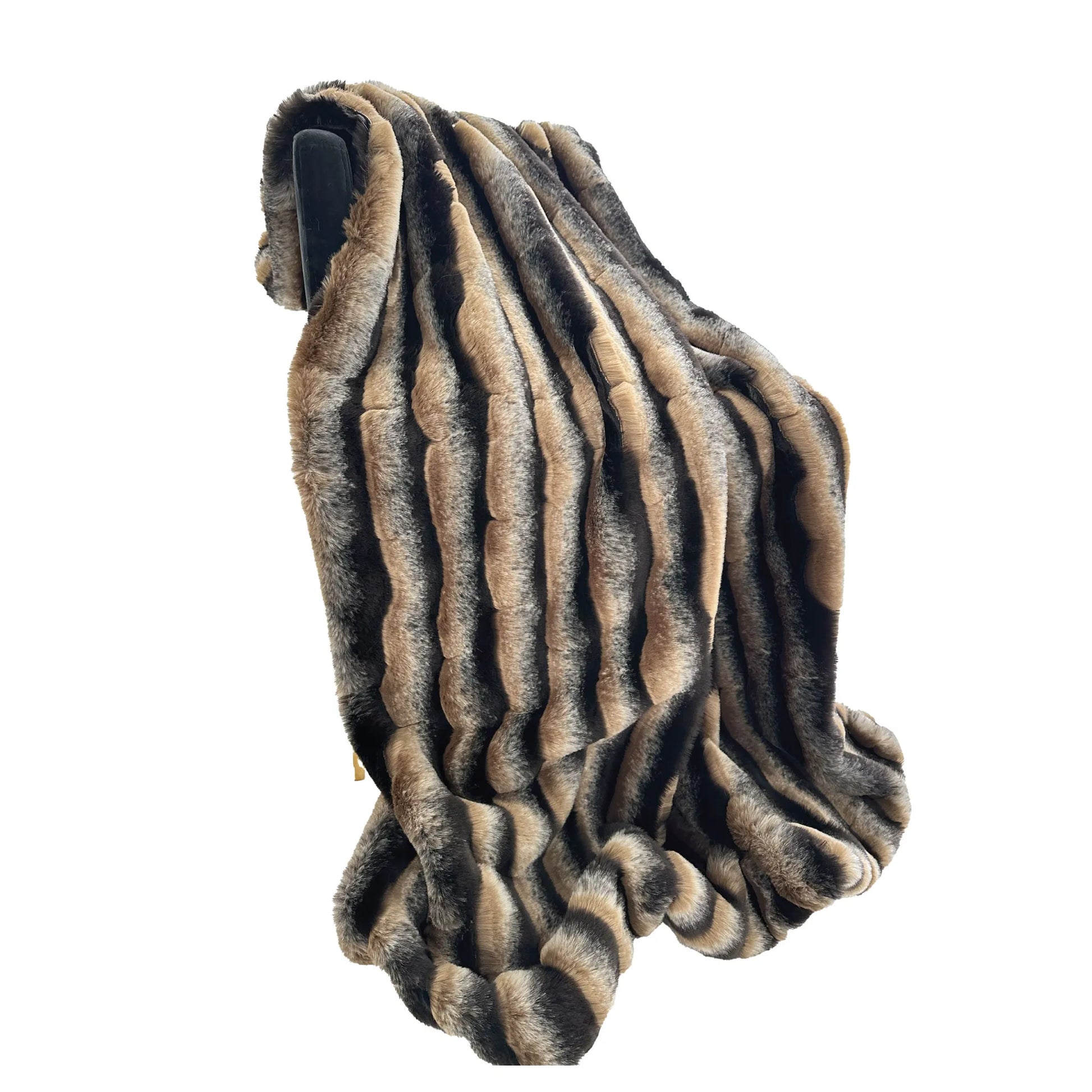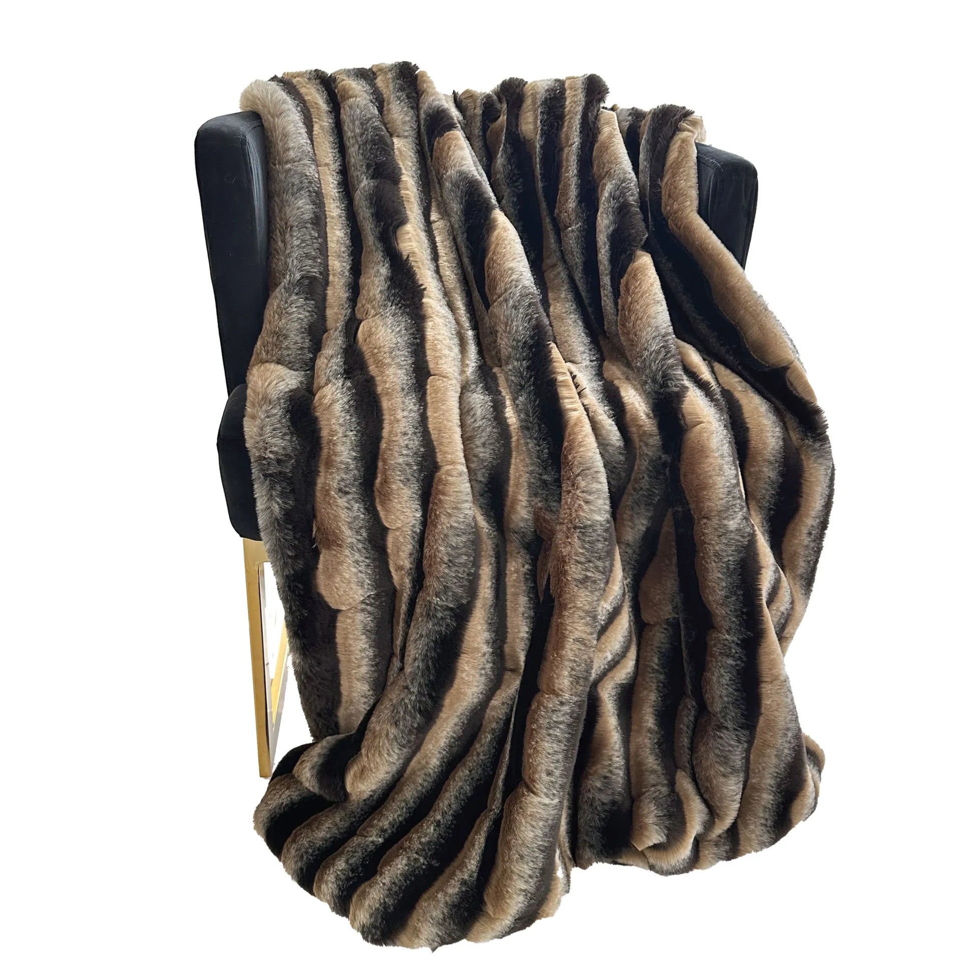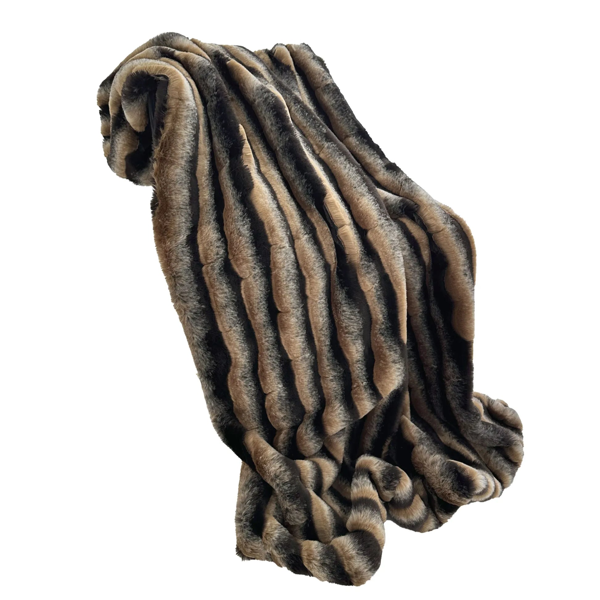 Plutus Taupe and Black Wild Wolf Faux Fur Throw – Reversible Plush Blanket (Made in USA)