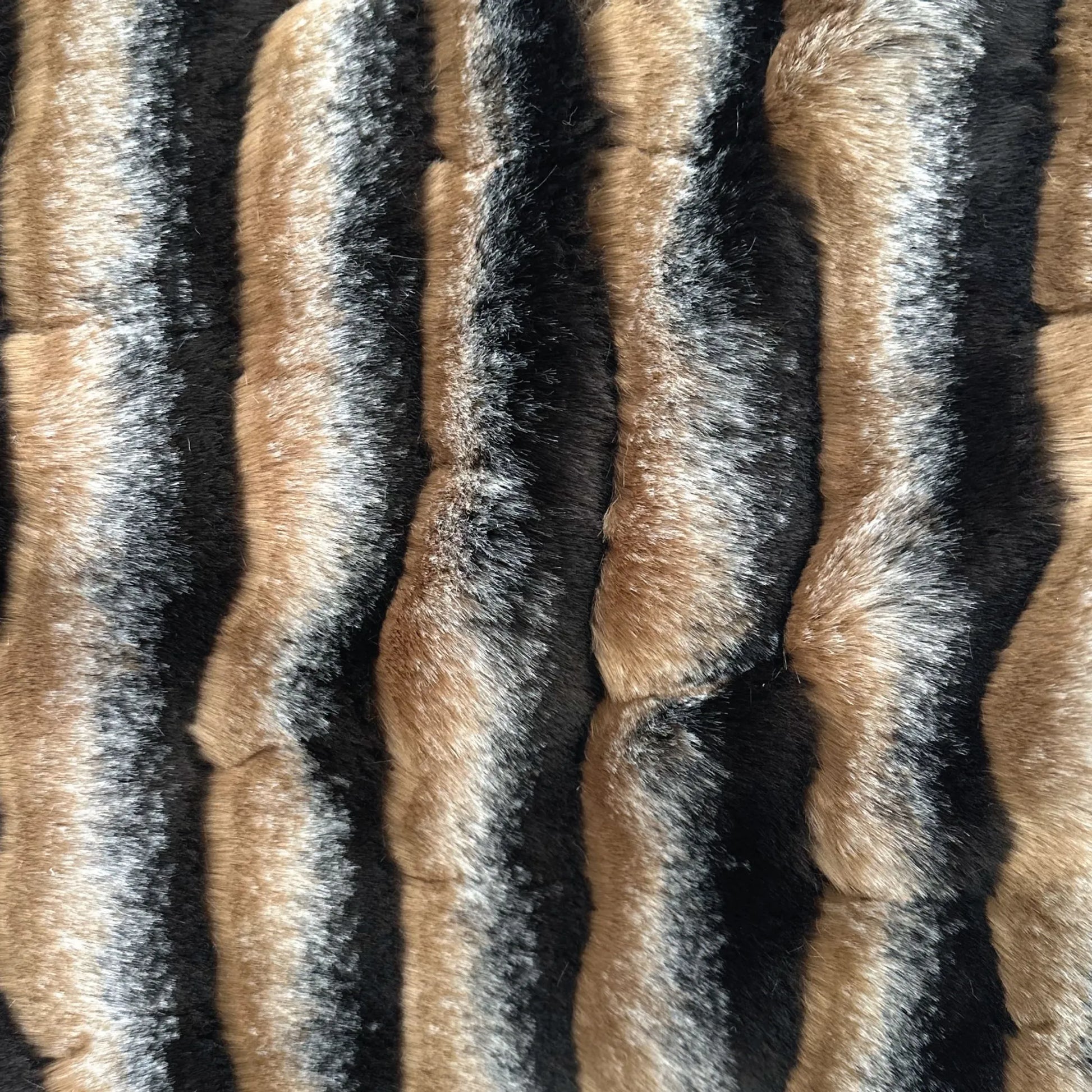 The Plutus Taupe and Black Wild Wolf Faux Fur Throw is a reversible blanket featuring a taupe and black pattern with a matching solid back. Handmade in the USA, this throw is crafted from 100% acrylic faux fur.