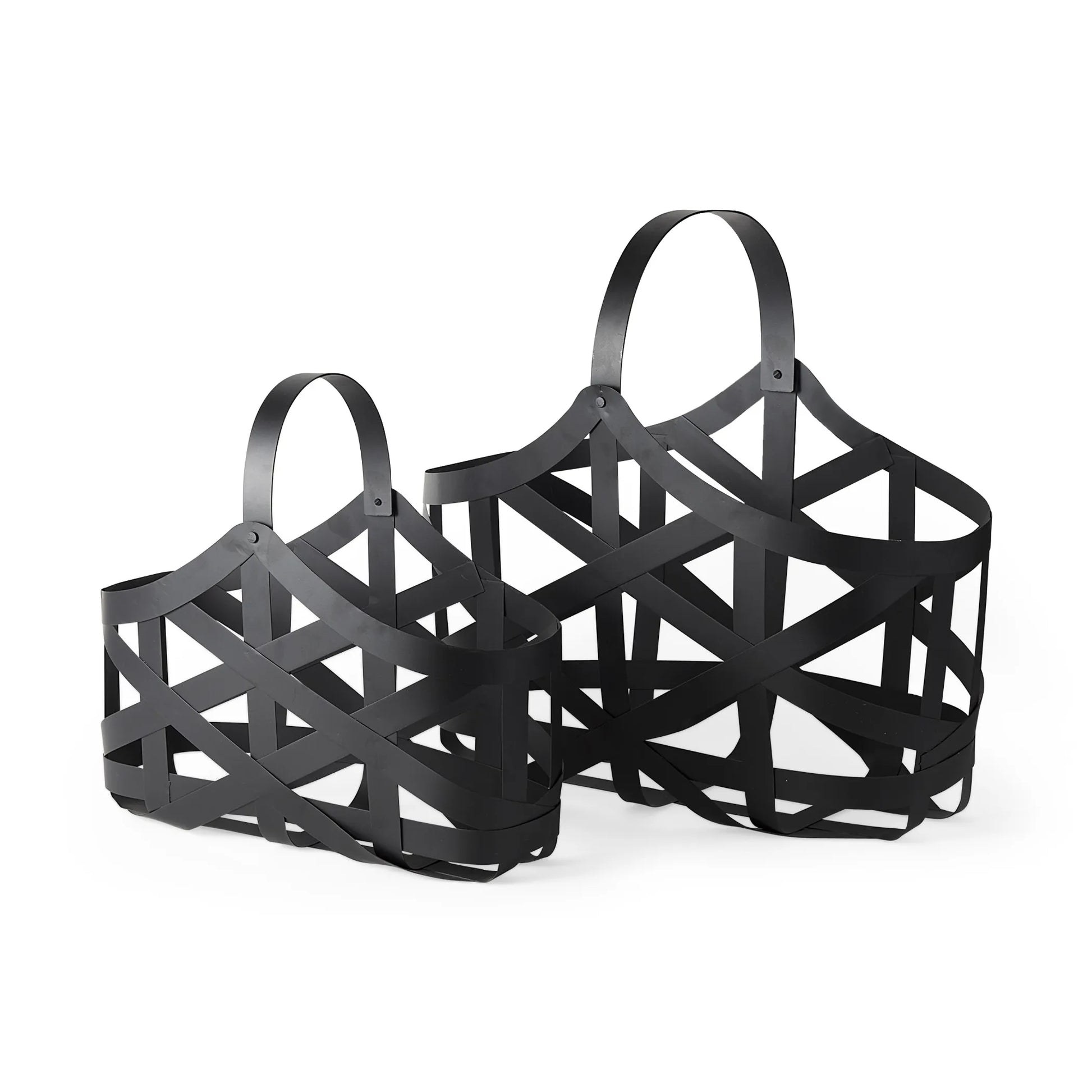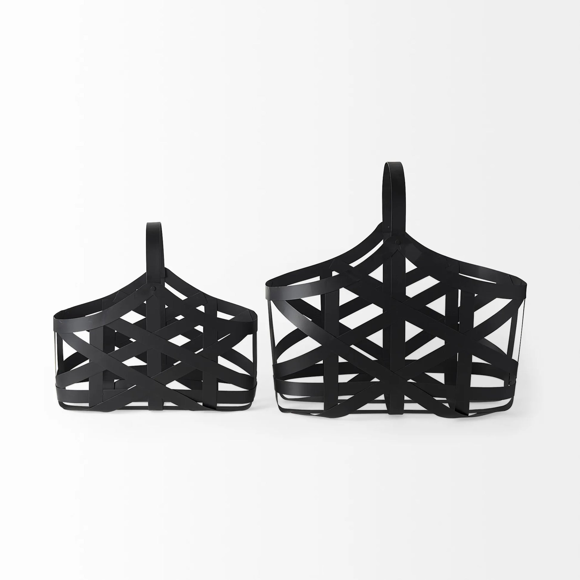 Set Of Two Black Geometric Metal Baskets